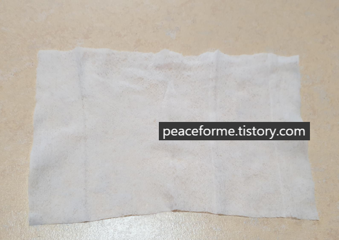 참고로, 숨 물티슈 한 장의 크기는 위와 같았다. 캡형 물티슈보다 조금 작은 크기를 지닌 것이 특징과 다름 없었으므로 이를 기억해 두면 좋지 않을까 싶다.