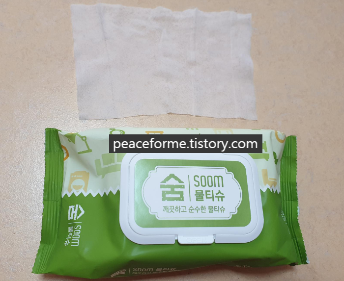 그러니 이제는 본격적으로, 숨 물티슈를 빼내서 직접 써보기로 한다.