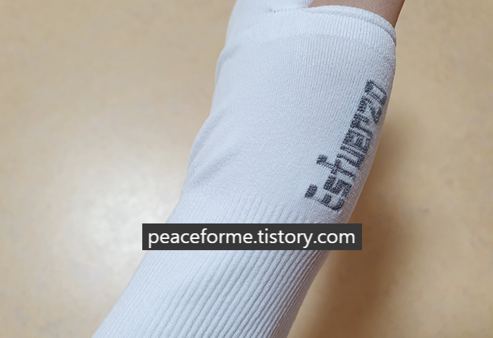그렇게 팔토시 착용을 마치고 나면, 위의 사진과 같이 'Esfuerzo'라는 영단어가 엄지손가락 아래쪽으로 포인트가 돼서 센스 넘치는 패션 아이템의 일부분으로 작용하는 순간도 만나볼 수 있었다. 나름대로의 디테일과 제품 관련 설명이 한 눈에 쏙 들어와서 나쁘지 않았다.