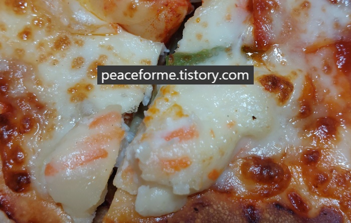 그리고 이마트 피자로 만나보게 된 새우 치킨 피자 속에서 부드러운 식감을 보유한 감자 샐러드의 고소함 또한 맛보는 일이 가능해 입이 즐거웠다. 특히, 포슬포슬한 감자 샐러드 사이로 샛노란 옥수수콘이 발견된 점도 만족스러움을 자아냈던 게 사실이다.