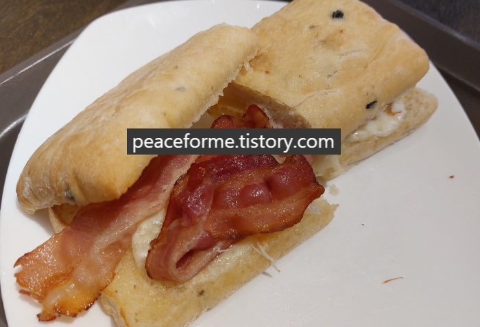 치아바타에 자리잡은 블랙 올리브가 감칠맛을 더했다. 빵 사이를 빼곡하게 채운 베이컨, 웨지감자, 치즈의 조합도 꽤 풍성함을 안겨주고도 남았다. 좋아하는 재료들로 채워진 메뉴라서 천천히 꼭꼭 씹어먹으며 식사하기에 부담이 없었다. 베이컨의 짭쪼롬함을 웨지감자와 치즈가 중화시켜줘서 그럭저럭 나쁘지 않았고, 치아바타 역시도 적당히 부드러워서 한 입에 넣고 즐기는 재미가 쏠쏠했다.