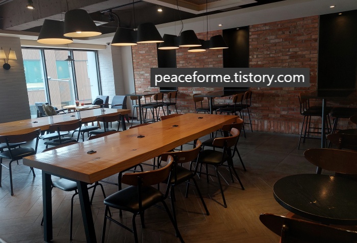 3층에는 2인, 4인용 테이블과 더불어 여럿이서 착석이 가능한 단체석(6인석, 8인석)이 구비되어 있어 눈여겨 볼만 했다. 그리고 흡연실도 눈에 띄어서 이 점도 기억에 남았다. 콘센트도 곳곳에 많이 설치된 것이 포착돼 만족스러웠다.