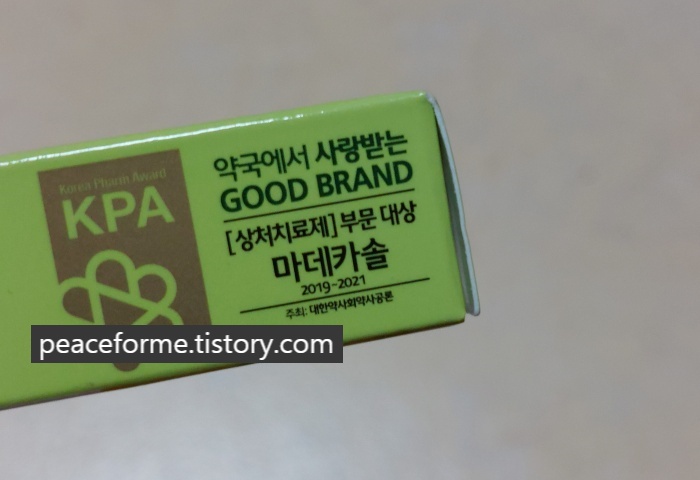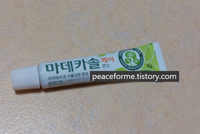 상자에서 꺼낸 마데카솔 케어 연고는 6g의 용량을 지니고 있었다. 기존에 사용해 본 적 있는 연고의 생김새와 크게 다르지 않아 반가운 마음이 들었다. 평소에는 후시딘을 애용하는 편이었으므로, 마데카솔을 오랜만에 바르게 된 거라 이에 따른 감회가 새로웠던 거다.
