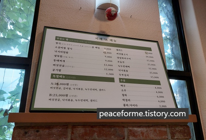 이와 함께 메뉴판을 통하여 다양한 종류의 음식을 판매한다는 사실을 확인하게 돼 흥미로웠다. 우리는 여기서 정갈한 6첩 반상으로 구성된 정식 2인분을 시켰다. 정식 같은 경우에는 된장, 강된장, 순두부, 뚝불, 김치(2인 이상) 찌개 중에서 한 가지를 선택할 수 있는 것이 특징이었다. 이러한 이유로 고민을 좀 하다가 된장찌개와 순두부찌개를 골라 주문을 완료했다.