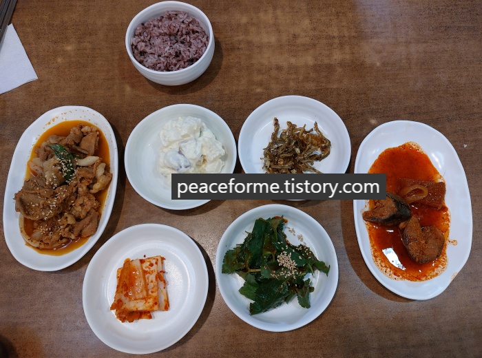 이레미의 정식 메뉴로 마주하게 된 6가지 반찬은 위와 같았다. 제육볶음, 고등어무조림, 감자와 과일을 포함해 각종 야채를 넣어 마요네즈에 버무린 사라다(샐러드), 멸치볶음, 김치, 나물무침의 비주얼이 감탄을 자아냈다. 실제로 보는 것 못지 않게 맛도 좋아서 밥이 술술 넘어갔다.