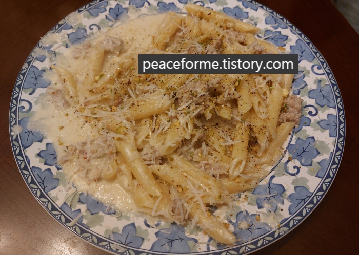 새하얀 치즈가 파스타 위에 소복하게 쌓인 가운데, 살시체와 피스타치오가 감칠맛을 더해줘서 금상첨화였다. 게다가 한 그릇의 양이 상당히 많았던 관계로, 이 점도 흡족함을 자아냈다.