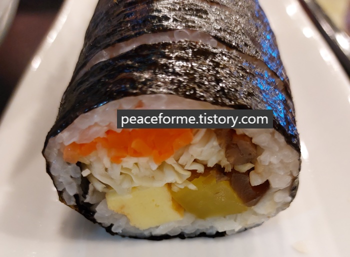 이로써 먹어 본 박고지김밥은 간장소스를 베이스로 달달짭짤함과 동시에 쫀득거리는 식감을 보유한 박고지와 각종 야채의 조합이 매력적인 메뉴였다. 샐러드 김밥의 일종으로 부담없이 가볍게 먹기 딱 좋았다. 평소에 부족한 야채 섭취에도 도움을 주니 금상첨화였던 것도 사실이다.