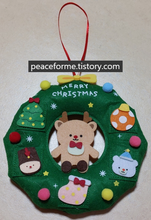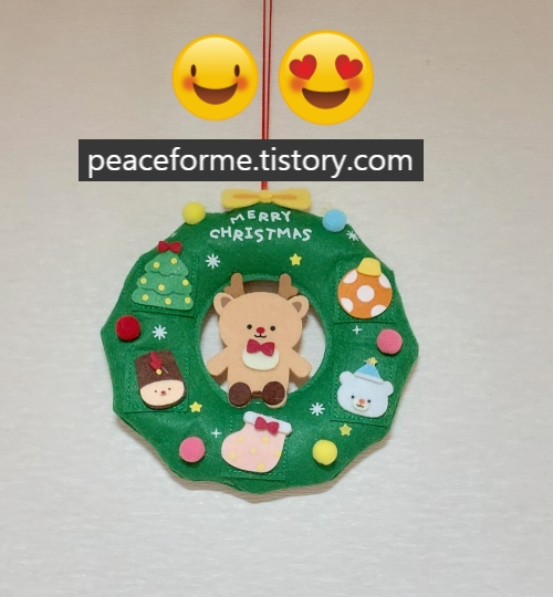 다이소 크리스마스 펠트 장식 리스 :: 성탄절 분위기 내기 좋은 귀여운 가성비 벽걸이 장식품