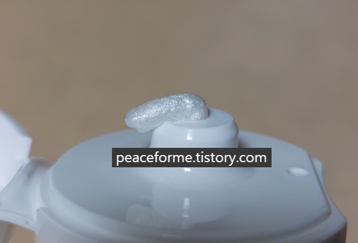 잠시 후에 확인해 본 김치 시크 뷰티 라이스 라이스 베이비 포밍 페이스 클렌저의 내용물은 위와 같았다. 펄 화이트의 화려함이 눈에 쏙 들어와서 인상적이었다. 사용법은 기존에 써온 폼 클렌저의 양식을 따랐다.