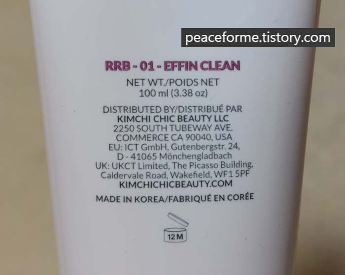 김치 시크 뷰티 라이스 라이스 베이비 포밍 페이스 클렌저 1개의 용량은 100ml로, 개봉 후 1년(12개월) 이내에 사용하는 것이 원칙이다. 덧붙여 제품 뒷면에 표기된 설명 중에서 메이드 인 코리아라고 표기된 부분이 시선을 사로잡았다.