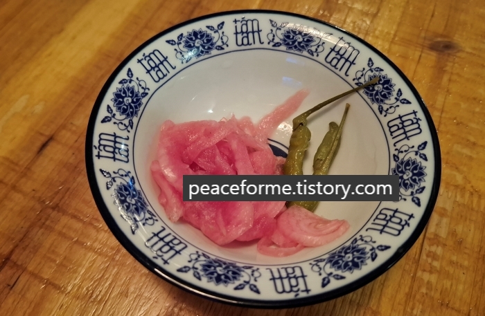 기본찬으로는 양파절임과 고추가 나왔는데, 쌀국수에 곁들여 즐기기에 괜찮았다. 뿐만 아니라 먹거리가 담겨 나오는 그릇들 역시도 땀땀에서 제작한 것임을 깨닫게 돼 흥미로웠다.