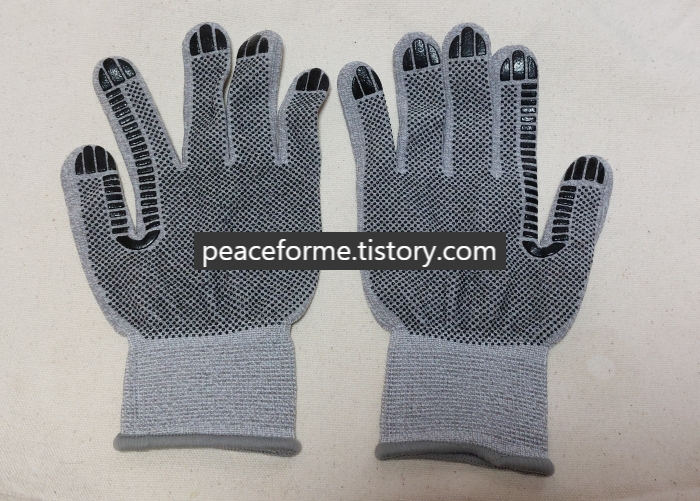 이건 장갑의 손바닥 부분이다. 앞서 언급한 도트디자인으로 빼곡하게 채워져 있어 흥미로웠다. 험한 산을 타는 건 아니지만 때때로 등산을 감행하다 보면 경험할 수 있는 미끄러움을 적당히 예방하는데 도움을 줘서 나쁘지 않았다. 가성비를 위해 산 것이라서 놀라운 효과를 접하긴 힘들었지만, 이 정도면 충분했다.